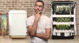 За две недели растишка успешно разрослась и даже сформировала несколько пар листьев. Накрыл ее на некоторое время пятилитровой бутылкой в качестве парника, а то влажность держится в районе 50 %. Приходится включать вентилятор, чтобы немного снизить температуру. Источник света я расположил в 45 сантиметрах от верхушки. Для полива используется 1 литр воды в сутки. Из удобрений я пока добавляю лишь 1 мл/л Bio Grow.