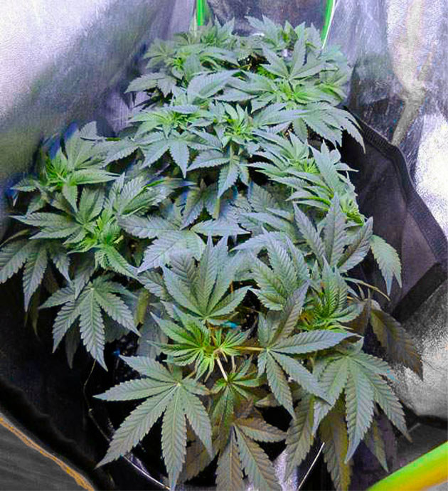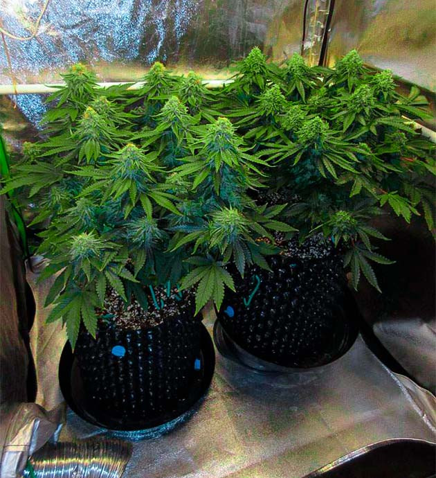 К концу восьмой недели растения были низкие и густые, выглядели потрясающе. Они были полностью готовы к переезду в отсек для цветения, где как раз закончился предыдущий цикл. Заметил, что грунт за 2 дня недостаточно просыхает после полива в 2 литра, поэтому стал лить немного меньше и направил вентилятор на нижние части кустов. Состав компота без изменений.