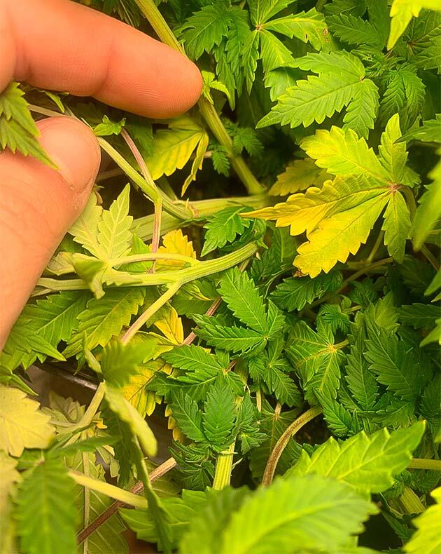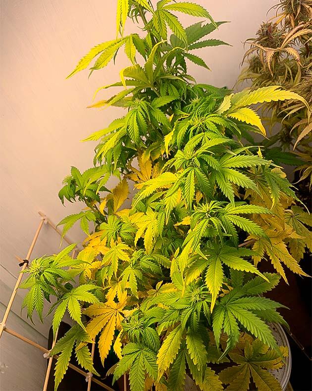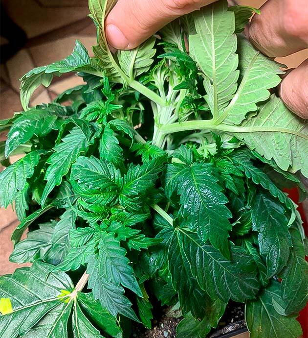 Ребята, сейчас начнется что-то нехорошее с растением. Оно неплохо растет, как видно на примере зеленой массы растения. На 2,5 литра «субстрата» оно выглядит, как мои предыдущие кусты на 7 - 10 литрах. Но я вообще не понимаю, как поливать так, чтобы оно не стрессовало.