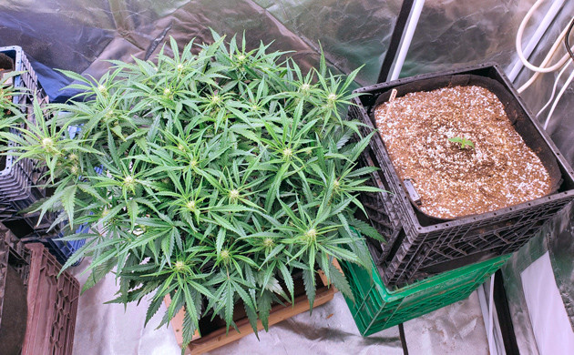 На пятой неделе Gelato чувствовала себя на твердую пять. К концу недели удалил большую часть листвы и сделал LST для каждой из веточек. Кормил каждый день, в основном MegaCrop. Отмечу, что я даже не ожидал такой прыти от автоцвета: развивается уверенно, стабильно и очень бодро, хорошо переносит тренировки и с удовольствием кушает удобрения. Не слушайте никого, тренируйте автоцветы, если у вас есть достаточно опыта в этом деле. Показатели в боксе на весь период вегетации остались неизменны: 24 часа света, влажность 50%, температура 24 °C. К моему удивлению, у кустика даже появился запах, хотя я увидел только признаки предцвета.