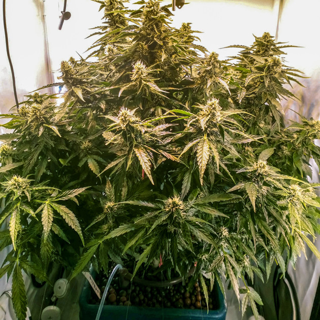 На протяжении одиннадцатой и двенадцатой недель растение вело себя просто прекрасно. Шишки формировались очень плотными, увесистыми и нереально липкими. Это были последние недели, когда я использовал удобрения, дальше будет промывка. На 80-й день роста куст выглядел вот так: