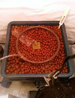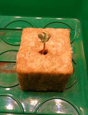 Для начала я замочил семя в стакане, и после того как оно проклюнулось, переместил в кубик с минеральной ватой. Там оно находилось еще несколько дней. Появившийся росток я перенес в гидропонную установку внутри бокса. Прилагаю фото, как он выглядел на 3-й и 7-й дни.
