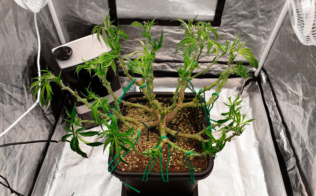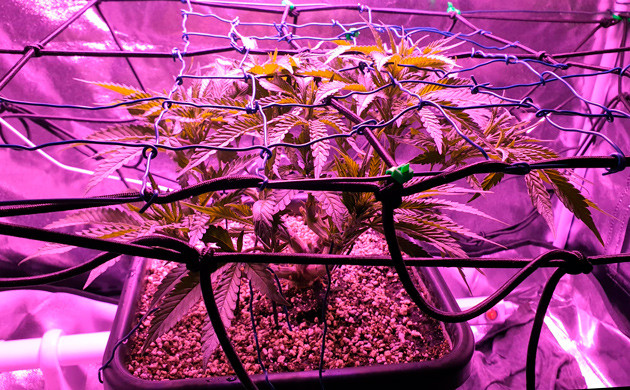 В начале девятой недели я решил, что растиха готова к еще одному топпингу. Снова подрезал каждую ветвь и установил сетку ScrOG.