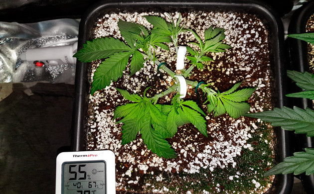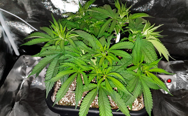 На протяжении этих недель я продолжал тренировать растиху. Сделал еще одну тщательную дефолиацию, но девочка очень быстро восстановила зеленую массу. Ей уже явно было тесно в маленьком тенте для вегетации, очень скоро она переедет в большой бокс для цветения. Растиха продемонстрировала себя с лучшей стороны, восстановилась после трёх топпингов, сформировала крепкие ветви и хорошо наращивала зеленую массу после каждой дефолиации. Создавалось впечатление, что ей немного не хватает питательных веществ, так как последние отросшие листья были светло-зеленые, но я решил не форсировать события до начала цветения. Большой бокс освободился, и последнюю неделю в веге Mimosa Evo стояла уже в своём собственном домике.