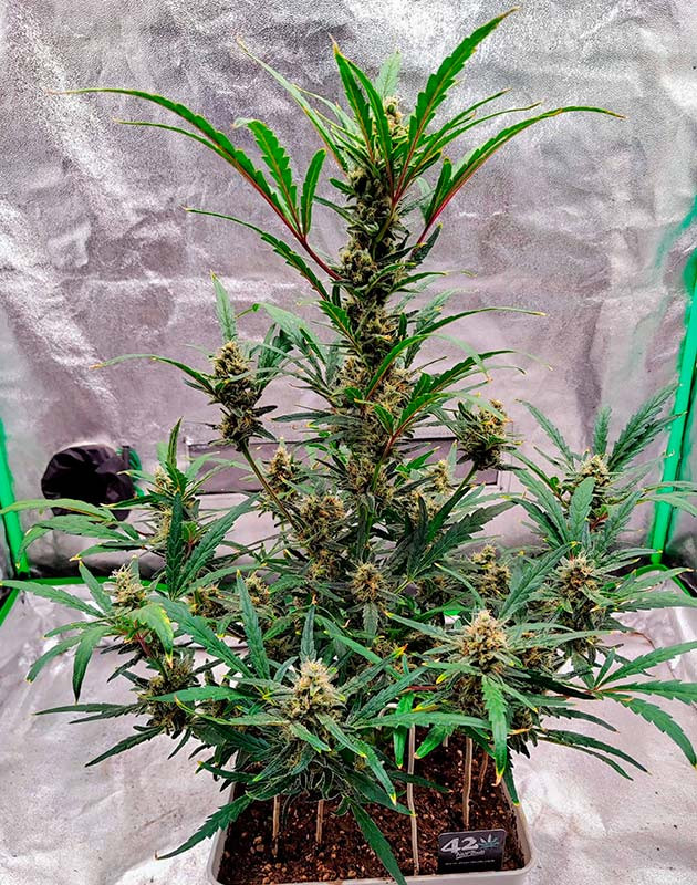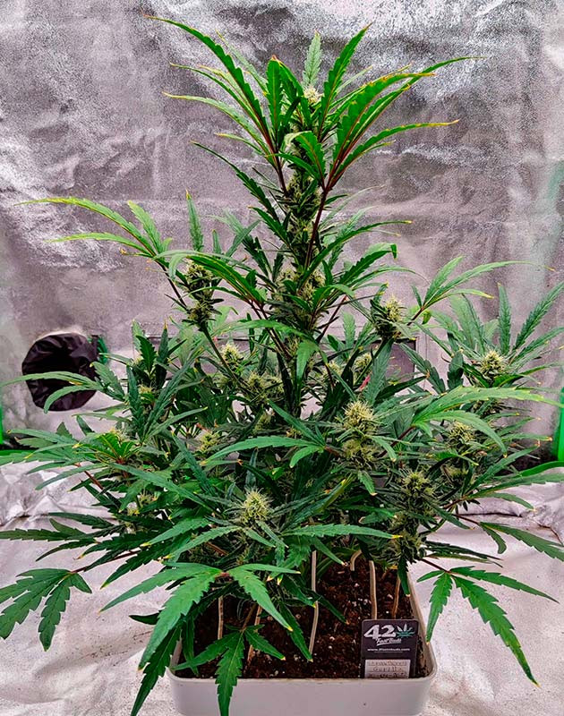 Две недели прошли без изменений с моей стороны, но растишка не перестает развиваться. Симптомы перекорма не прогрессировали, поэтому подкормку оставил прежней. Куст достиг своей максимальной высоты и теперь бросил все свои силы на формирование смолистых шишек, испускающих приятный и не очень сильный фруктовый аромат. Жду не дождусь харвеста.