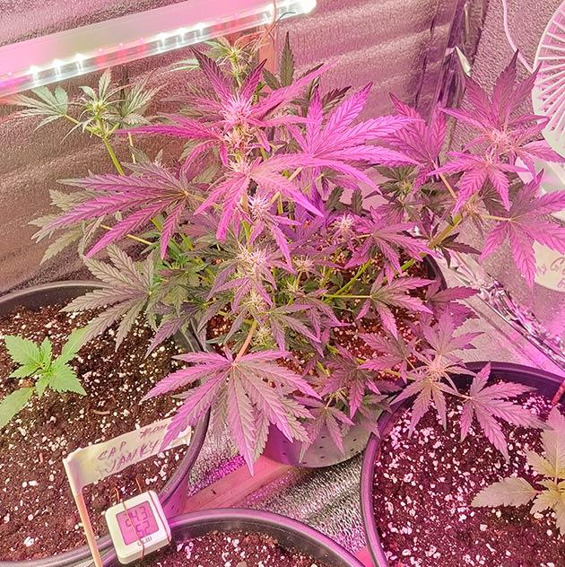 Все путем. Девочки растут и набирают массу. Шишки прут только в путь! Единственная проблема - как бы до харва дотерпеть. Фиолетовый куст просто великолепен. Жаль он единственный дал такой фенотип.