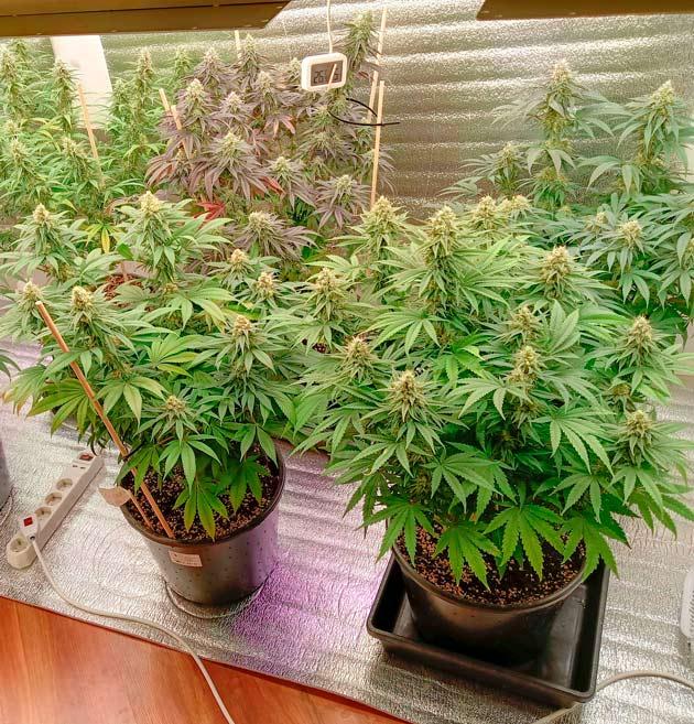 Про новый «бокс». Конструкция 2700 х 2700 х 1000+ см. К нему набрал новых удобрений и добавил чуть-чуть света. Попозже прикручу борды на алюминиевый профиль и еще ряд добавлю по центру. А сейчас милые леди отправляются на цветение. Свет в режиме 12/12 + полив RasTee 2 мл/л.