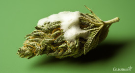 Спустя пару дней в паре бошек обнаружил гниль. Пораженной была небольшая часть, только на паре крупных «плодов», и на центральном в том числе. В срочном порядке все вырезал, чтобы зараза дальше не распространилась. Параллельно провел дефолиацию.
