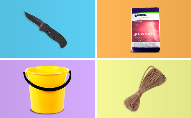 Тут, конечно, много зависит от того, где вы собираетесь высаживать растения, как будете потом за ними ухаживать и как часто планируете наведываться на плантацию. Однако примерный список инвентаря для аутдорного выращивания конопли выглядит вот так: