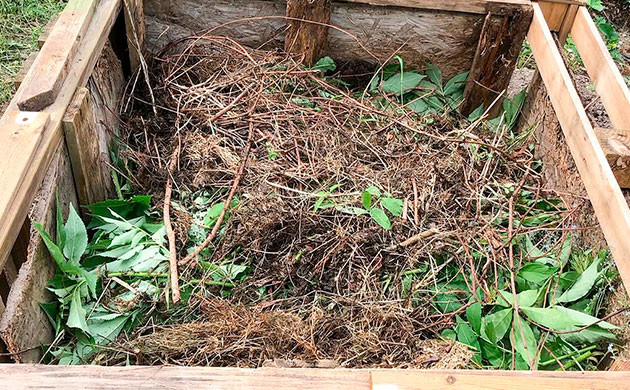 4. Добавьте зеленый материал. Используйте зеленые, богатые азотом материалы, такие как свежая скошенная трава, листья или пищевые отходы. Это поможет сбалансировать тяжелые по содержанию углерода стебли и корневища.
