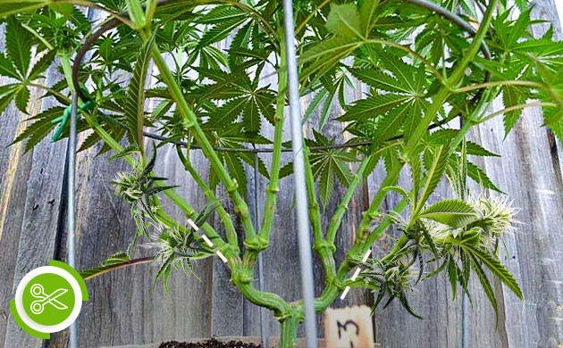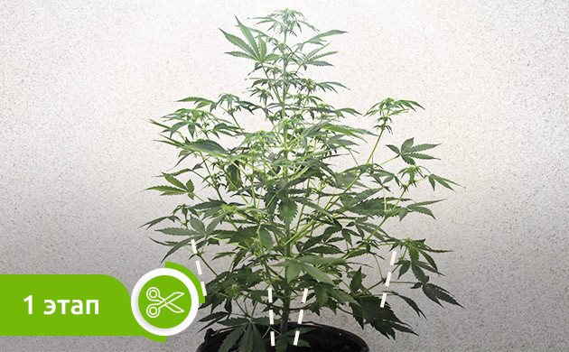 Если срезать все неперспективные ветви сразу, то растение может получить сильный шок, после которого ему будет сложно восстановиться. Лучше выполнять постепенное прореживание куста с перерывами в 1-2 недели. Сначала можно срезать крупные ветви, через неделю-две листья и побеги из внутренней части куста, а еще через некоторое время срезать зародыши бутонов в нижней части кроны. После каждой новой обрезки нужно дождаться того момента, когда каннабис снова начинает вытягиваться и формировать новые листья и побеги. Это означает, что растение полностью оправилось от стресса.