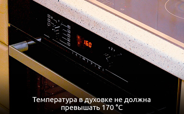 - При выпекании в духовке температура не должна превышать 170 °C.