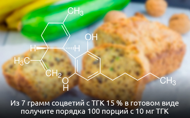 - Для расчета содержания ТГК в готовых продуктах можно ориентироваться на следующие цифры. Если вы приготовите канна-муку из 7 грамм соцветий с концентрацией ТГК 15 %, то в готовом виде получите порядка 100 порций, в которых будет содержаться 10 мг ТГК.