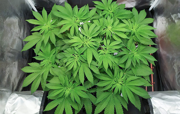 На пятой неделе я провёл последние манипуляции с кустиком на веге перед цветением. Убирал по несколько листиков в день, почистил нижний ярус. Таким образом мне удалось сформировать отличную макушку перед установкой сетки. На неделе давал растихе только чистую воду, без добавок. Выглядит она отлично, никаких проблем. Её рост по кроне – 20 сантиметров, несколько кол «торчат» на 23 сантиметра. Скоро можно будет убирать растяжки от LST.