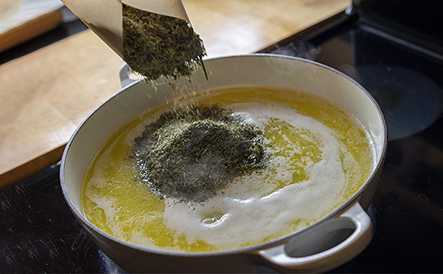Первый этап будет точно таким же, как и в предыдущем пункте: вы просто сушите и хорошенько измельчаете листья марихуаны. Далее на один стакан высушенных листьев следует взять одну пачку хорошего сливочного или кокосового масла.