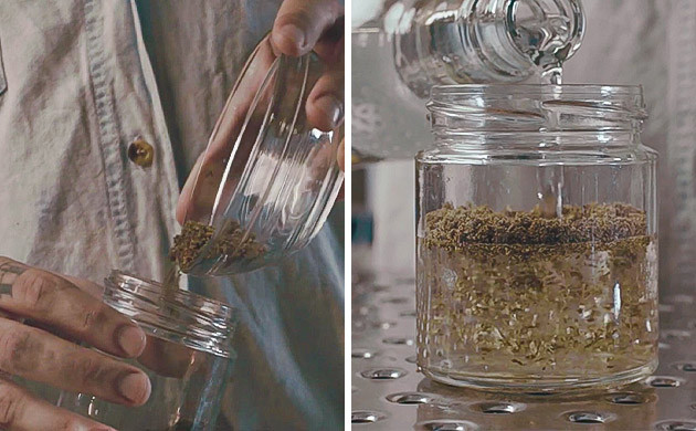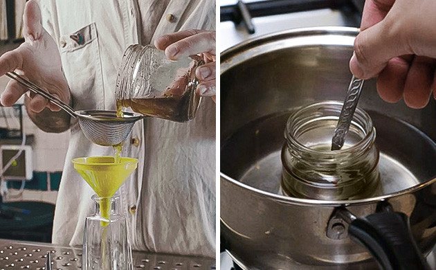 Первое, что вам понадобится, – это хорошенько высушить имеющиеся листья. Можно ускорить данный процесс и просушить листья в духовке, разложив их тонким слоем на противне и оставив на 20 минут при 110 градусах. Высушенные листья следует тщательно измельчить, залить спиртом и плотно закрыть емкость крышкой. Каннабиноиды отлично растворяются в этаноле, и чем выше будет процент спирта, тем быстрее пройдет процесс экстракции. Кто-то утверждает, что достаточно нескольких часов, другие же предпочитают подержать листья в таком виде примерно неделю. Если встряхнуть емкость, то на ее поверхности должны образоваться пузыри с радужными масляными разводами. Далее содержимое процеживают, чтобы избавиться от растительных остатков, а емкость с экстрактом отправляют на водяную баню. Испарять концентрат на открытом огне крайне опасно из-за присутствия спирта в составе. Есть еще более медленный, но минимально трудозатратный вариант: просто оставить банку с экстрактом открытой и ждать, пока спирт испарится естественным образом.