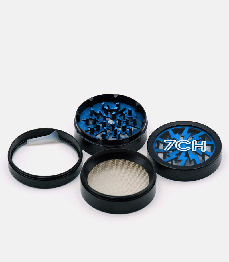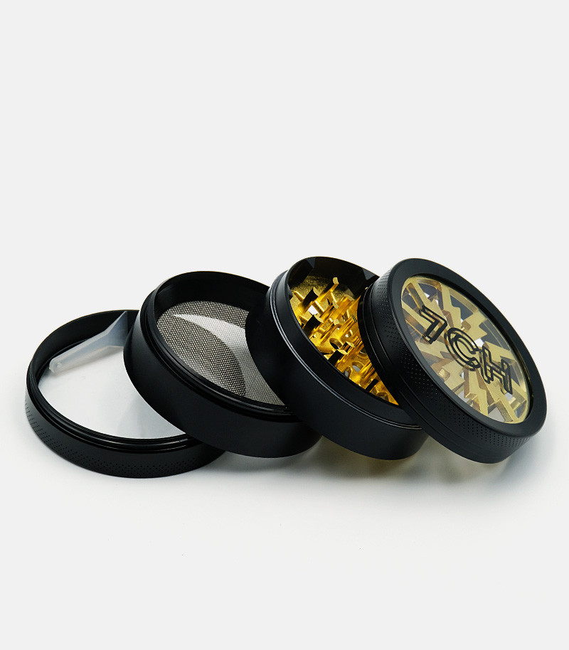 Измельчение сушеных материалов еще никогда не было таким простым. Гриндер из цинкового сплава – это надежный девайс, который прослужит гроверу долго. Он состоит из трех камер. Отличительная особенность изделия заключается в прозрачной верхней крышке. За счет этого можно наблюдать за процессом измельчения. Ножи ромбовидные и очень острые, что позволяет накрошить сушеные травы за несколько движений. Крышка крепится к отсеку с лезвиями при помощи магнита. Таким образом, даже если гриндер перевернуть, он не раскроется. Следующие две камеры предназначены для хранения измельченного продукта. Одна большая и достаточно вместительная, она имеет диаметр 63 мм. Нижняя камера используется для сбора пыльцы. Для этого отсек оснащен металлической сеточкой, через которую просеивается самая мелкая фракция. У гриндера оригинальный дизайн во многом благодаря прозрачной верхней крышке. Доступен для заказа в разных цветах.