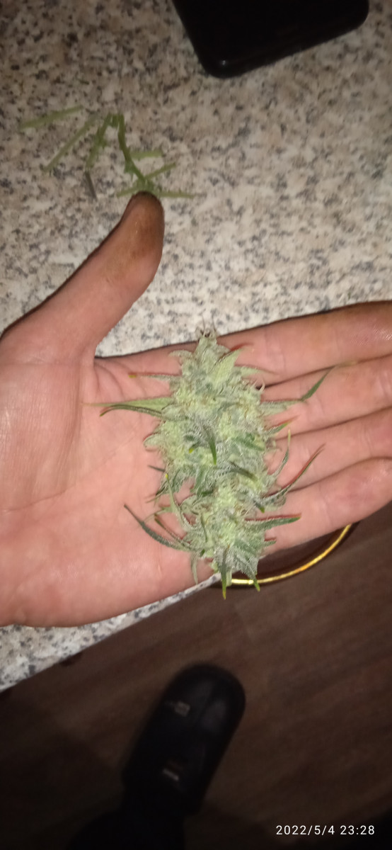 Шишки супер смолистые, очень вкусные и ароматные (воняло даже на лестничной клетке)?. Жаль, что мало уродилось. Выращивал в гроубоксе два куста. Размеры бокса 1.2м*0.8м, лампа лед350Ватт + 4 досвета 30Ватт каждый. По времени не ложились в заявленое время где-то на неделю (может я передержал). В общем всё нормально, твёрдые 4 балла из-за несоответствия по заявленному весу готовой продукции. ??