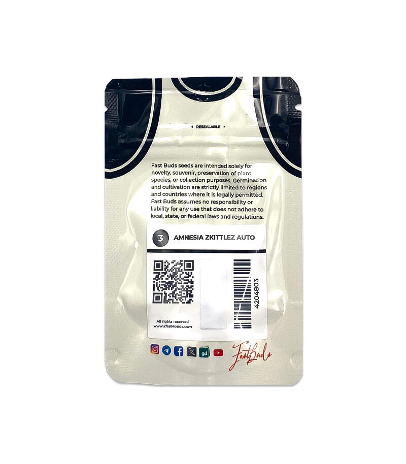 Автоцветущий сорт конопли Amnesia Zkittlez Auto – это один из самых популярных автоцветов в коллекции сидбанка FastBuds. Селекционерам удалось получить первоклассное растение с 75 % генов сативы и 25 % индики. В нем идеальным образом соединились две прославленные генетики – олдскульная Amnesia и современный Zkittlez из солнечной Калифорнии.