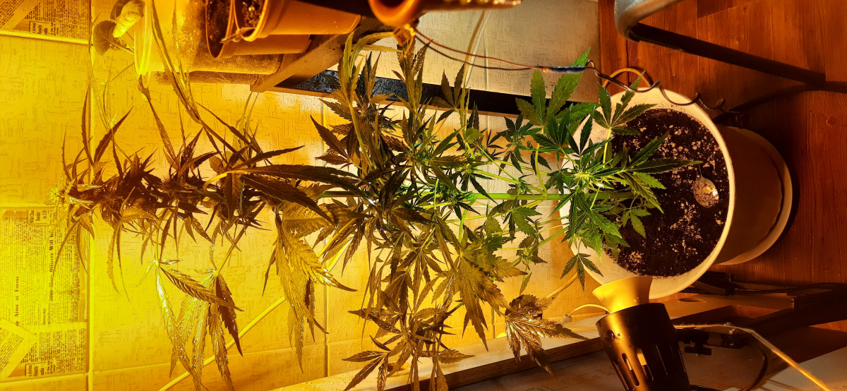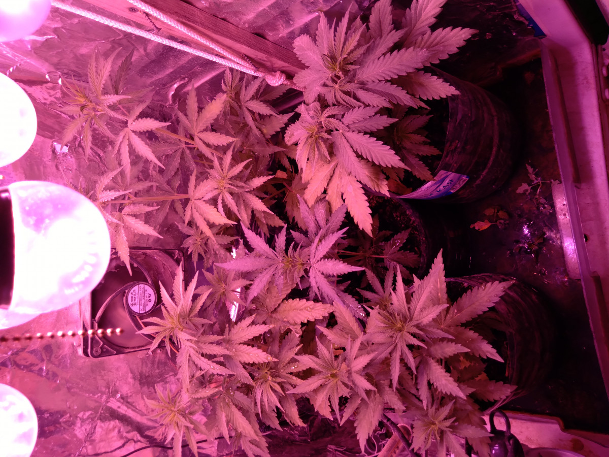 5 июня сбросил каску. 20 дней стоял дома под лампами красно - синий спектр + обычная энергосберегающая. 25 июня кинул в аут. В простом мешке. Было литров 15. Климат у нас суровый. Солнца почти небыло. Дождей за 2 месяца было много. Температура была разная от 10 до 22, но в основном средняя 15-18.6 августа рубанул. Идёт сильный тайфун. Я перестраховался.