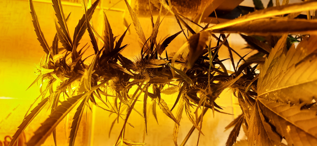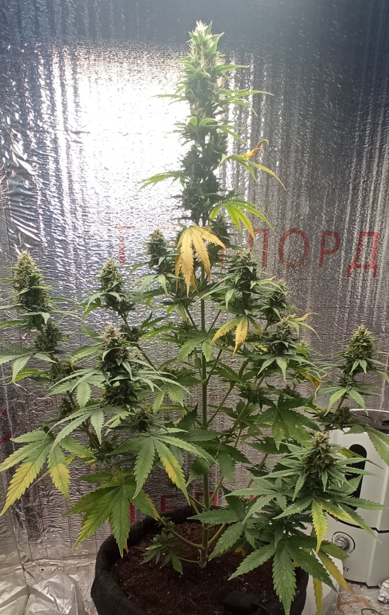 Первый мой гров, посадил семена и забыл. Выращивал на окне, потом купил лампу ДНАТ 150 ватт. Горшок с землёй 12 литров, роза и лимон 50/50. Кормил всякими разными удобрениями с цветочного магазина. От каски за 37 дней вымахал см 75. Цвести начал примерно на 24 день. Из 4 семян не проросло 1. В целом я доволен. Ещё не пробовал, но соблазн дикий, держу себя в руках) Пахнет вкусно)