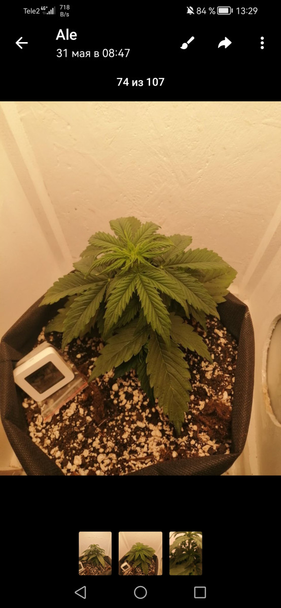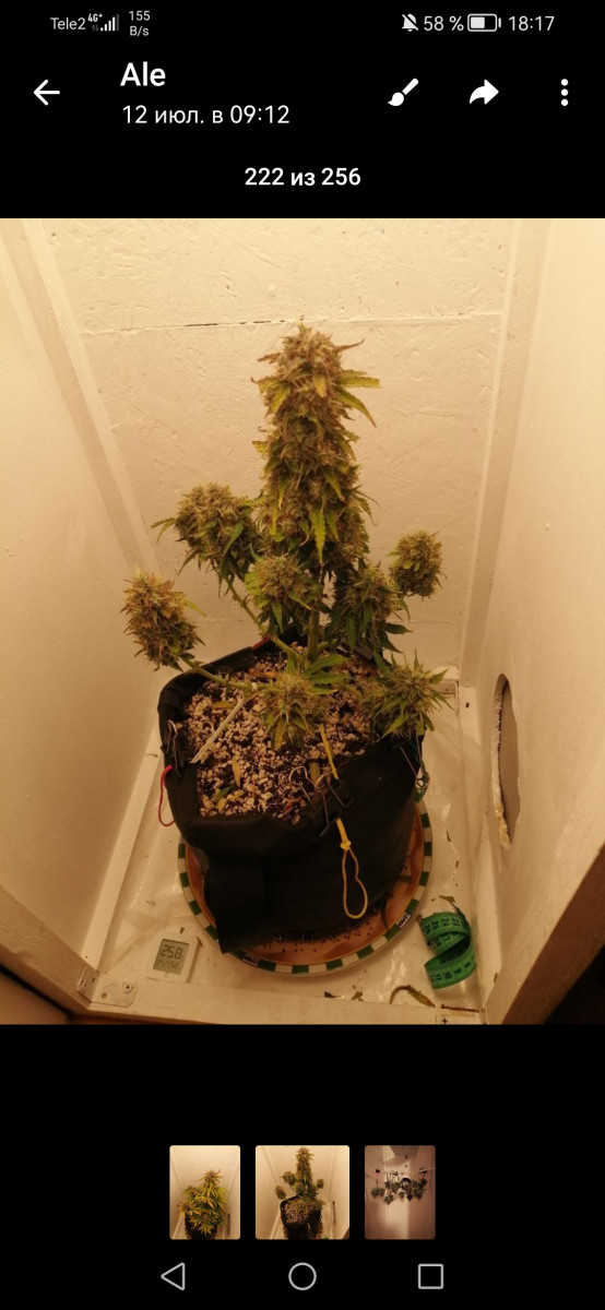 Хорошо растет и кушает, было пару очень сильных и критичных стрессов (сам виноват), но ничего, растиха выжила и порадовала качественным смолистым урожаем, правда не таким большим, опять же из-за стресса, харвест делал на 60ый день от каски.