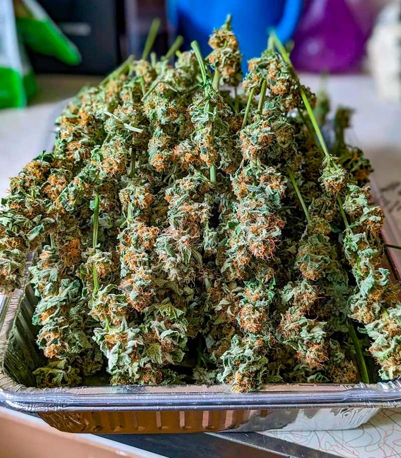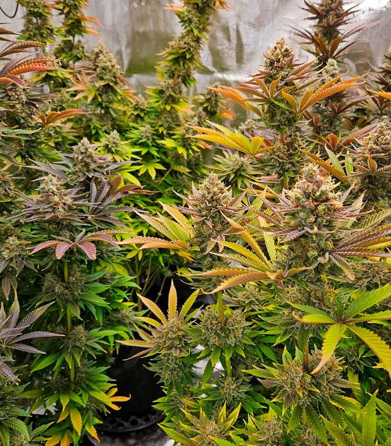 Для ограничения роста и повышения урожайности отлично подойдут техники ScrOG и LST. Растения хорошо себя чувствуют в почве или субстратах, но наилучшие результаты приносят в условиях аутдора, где ничто не помешает им реализовать заложенный природой потенциал. В этом случае урожайность достигает 800 граммов соцветий с куста, а с квадратного метра рабочего пространства в индоре можно собрать 550-700 грамм. И все это всего за 49-56 дней цветения.
