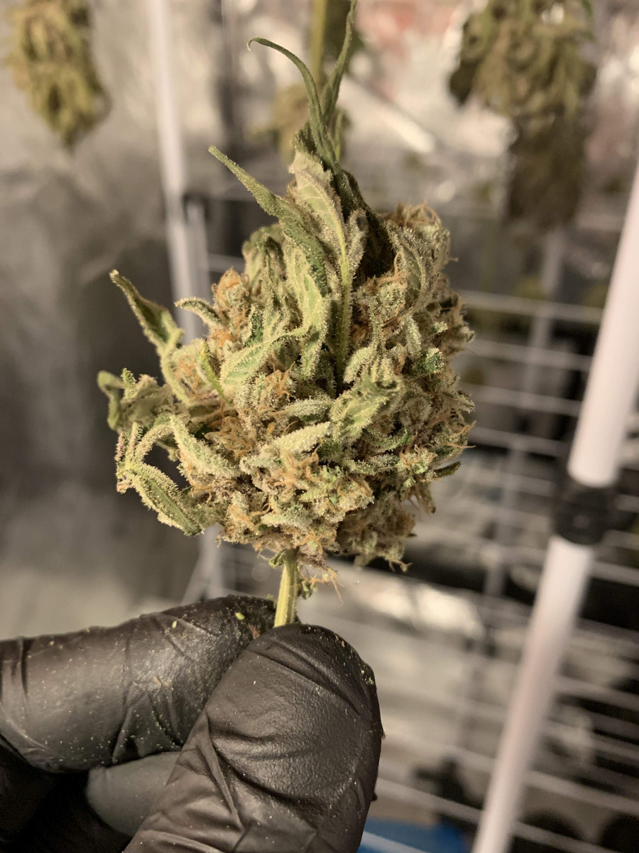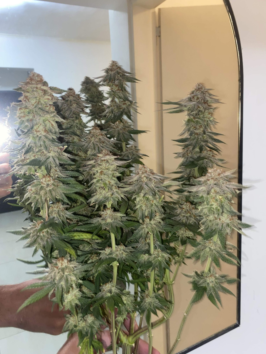 Цикл 21 неделя, 113 влажных грамм с куста. Хорошее растение, немного химического скунса, с небольшим количеством фруктов, но все мягкое и сочное, как большая белая акула!