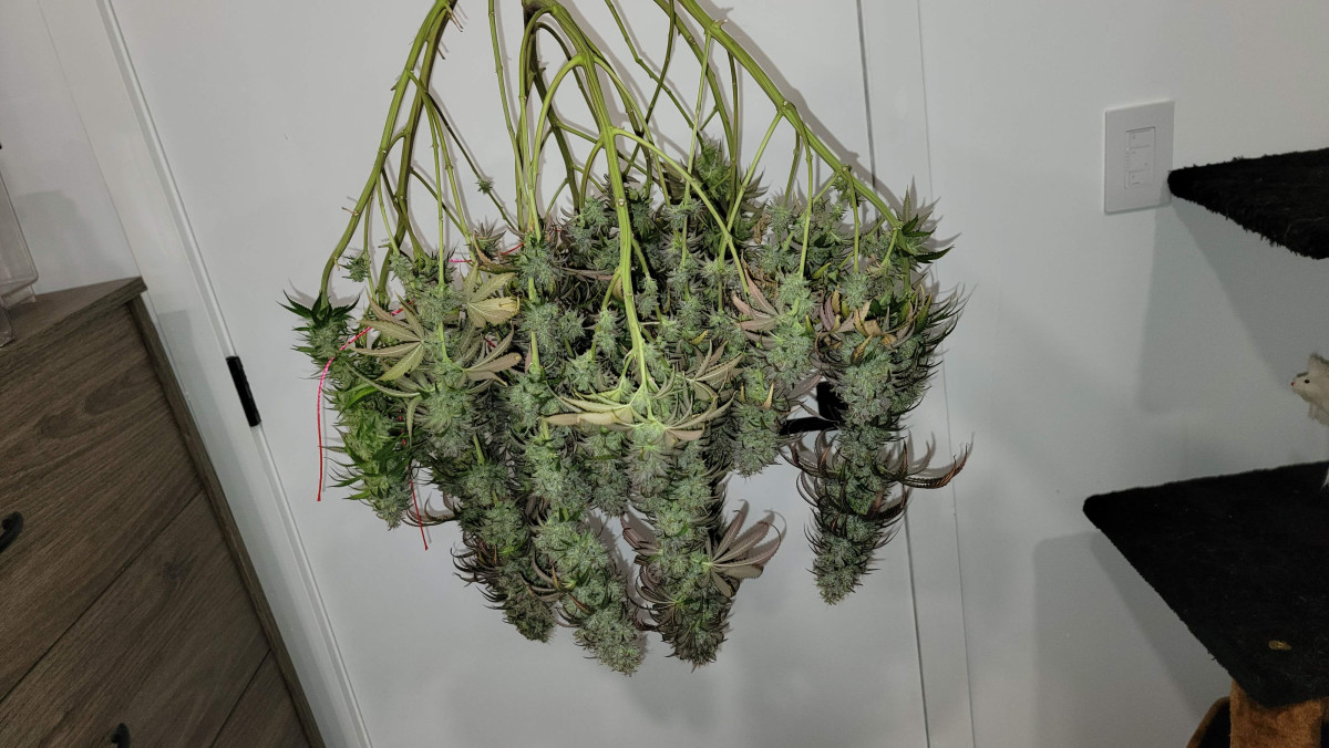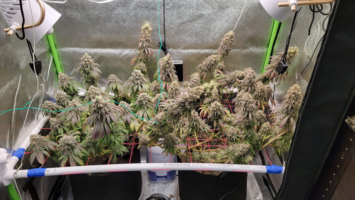 9 января 2022 года пришло время и все пять невест были собраны. Гров прошел без каких-либо серьезных проблем, за исключением одного самца. Остальные пять невест сформировали красивые твердые и смолистые бутоны, которые чертовски вкусно пахнут лимонным пирогом. Меня очень радует запах и вкус после сушки. Все растения достигли примерно одинаковой высоты, что тоже является плюсом для генетики.