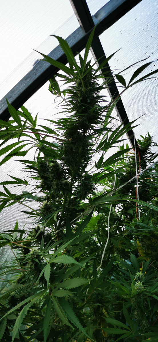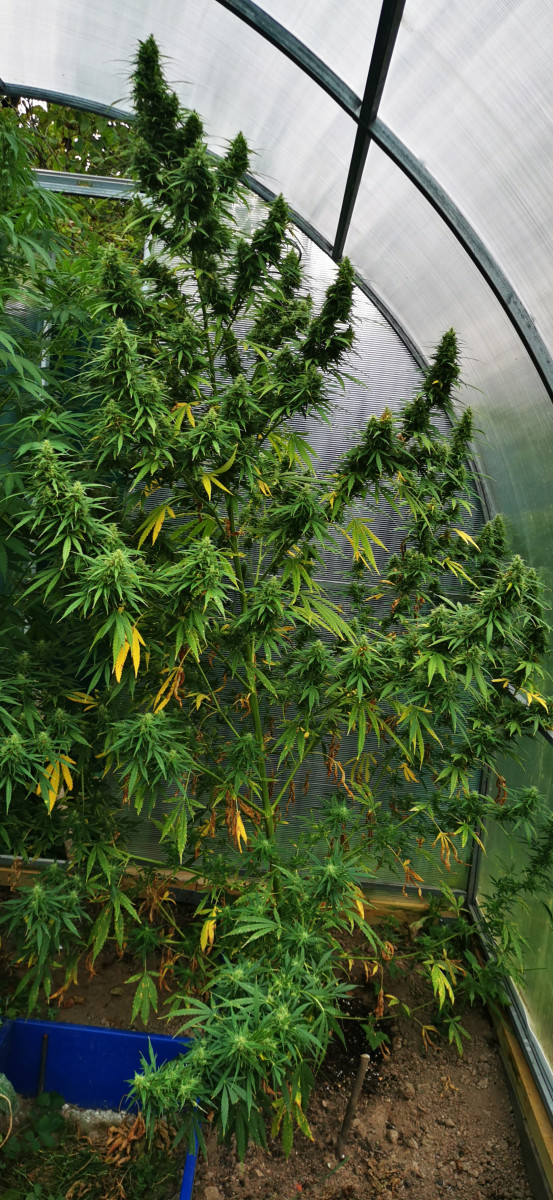 Сажаю её второй год подряд в подмосковье! Здесь есть мой отзыв за 20 год! Осталась одна семка с того года! Посадил 1 июня ростком 10 см в парник, прорастил 10 мая! Ростом где-то 2 метра! Меньше чем была в том году в пол раза в обхвате! Зацвела 15июля в конце августа начала появляться плесень какую-то часть урожая я потеряю но ей ещё как минимум 2 недели нужно цвести! И погода 5 градусов ночью, поставил обогреватель! Числа 10 сентября буду рубить а то плесень много испортит! В том году друзья назвали её убивашкой! Рядом растёт 2 куста The Church-церковь, кустистая нижние ветки наровне с центральной. Средняя начала цвести в начале августа а левая до сих пор не цветёт и накрывал их на 3 дня чёрной агротканью! Если погода даст посмотрю что будет с The Church оставлю отзыв!