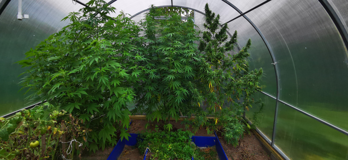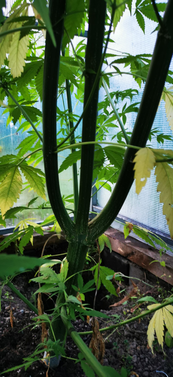 Семена проросли без проблем! Посадил 1 июня 3 штуки в аут подмосковья 2020 в теплице! 1 просто не трогал вымахала 2 с лишним метра высотой и более 2 метров в обхвате! Ветки подвязал, где за ствол завязал там по мере роста верёвка врезалась в стебель на половину ей хоть бы что! Наклонил и нечаянно сломал но не до конца, там где врезалась верёвка! Место где сломал завязал изолентой и в таком состоянии оставил а ей хоть бы что растёт дальше! В начале сентября поставил 2 обогревателя на ночь включаются! Второй куст подрезал, выросло 3 стебля но жидкий какой-то и на 3 недели позже зацвел чем сломанный! 3 посадил в 10 литровый горшок и стал гнуть в один день пришёл а он сломанный, перестал гнуть! Вырос 1 метр и только начал зацветать! 2 и 3 наврят ли даже что-то с них получиться а вот с 1 думаю что-то получиться, процентов 10 трихом потемнело надеюсь хоть на половину созреет грамм 200 надеюсь с него собрать!