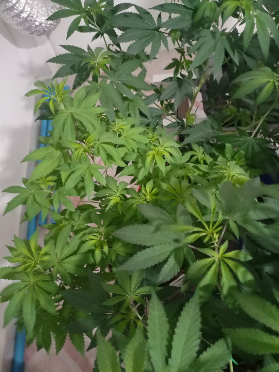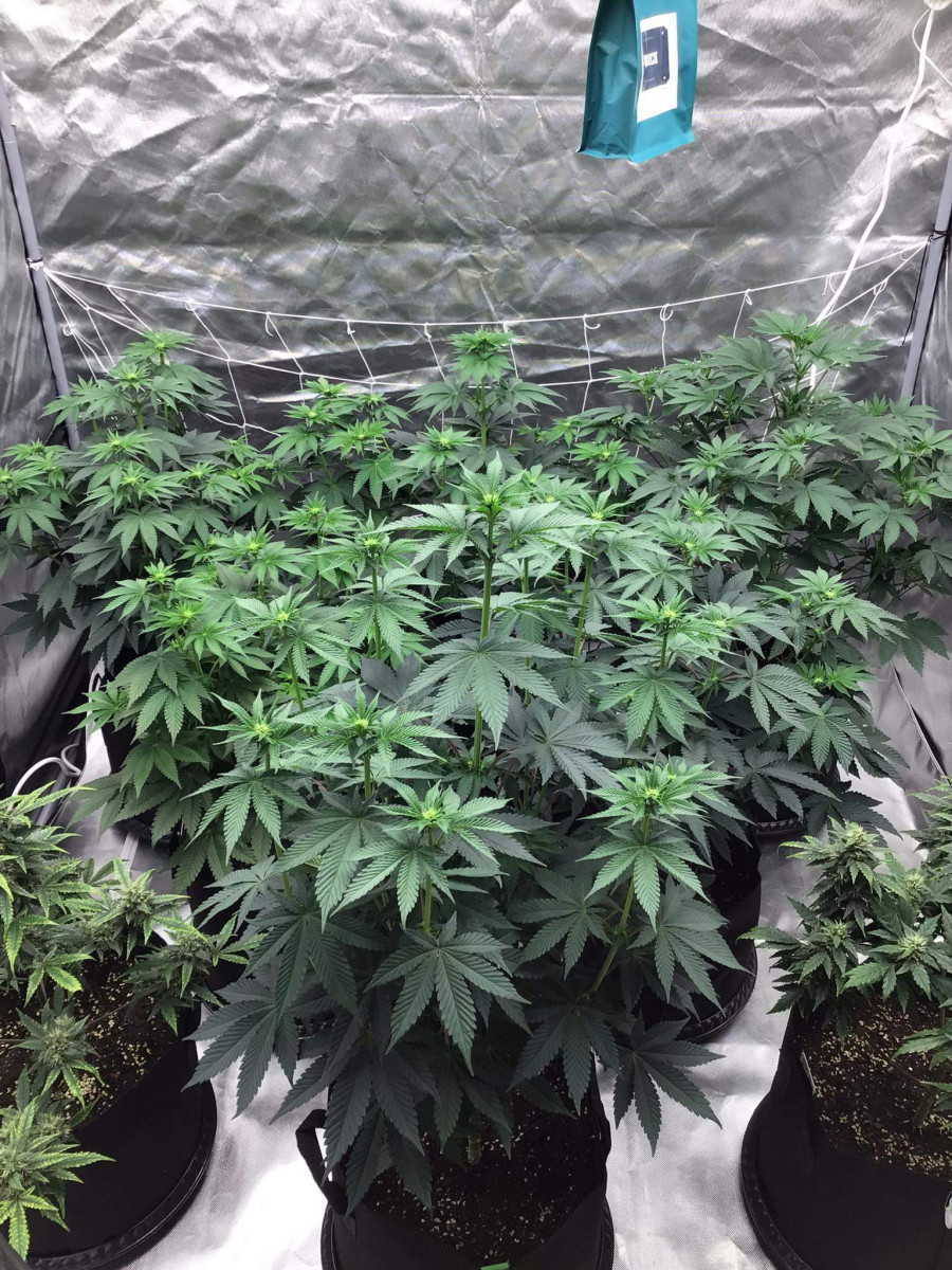 После 6-недельной веги первая неделя после перевода на цветение. Все идет шикарно и, думаю, так и будет. Пока очень доволен. Чувствуются отличные гены. Все растения одинаковые, без фенотипов пока.
