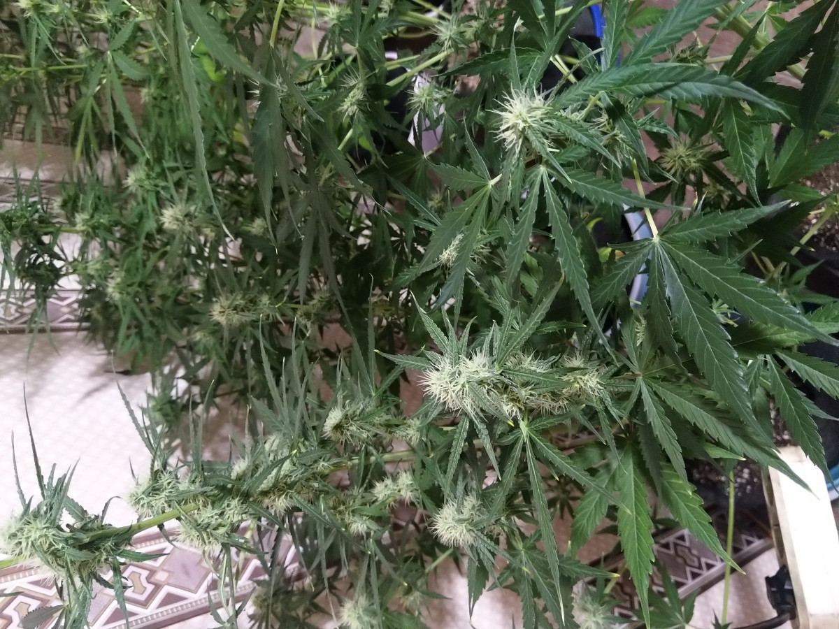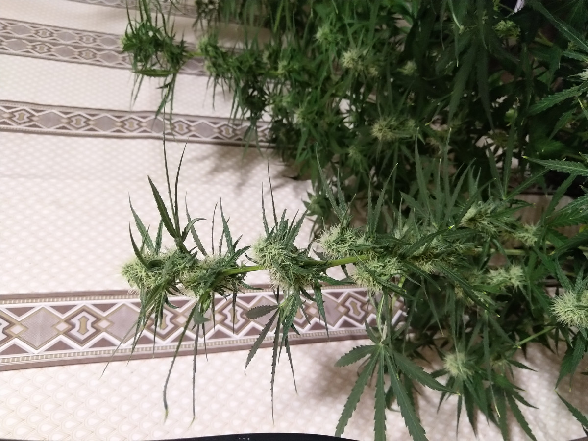 Автоцвет как автоцвет, но для скрытого незаметного грова в огороде лучше не придумать. Его вообще никак не видно и не слышно. Внимания не требует практически. Только полива в засуху. Зацветает примерно на 5 неделе, цветет 6 недель. Урожайность нормальная. Шишки плотные как орехи. Вот где гриндер хорошая штука, полезная, только им можно нормально покрошить шишку.