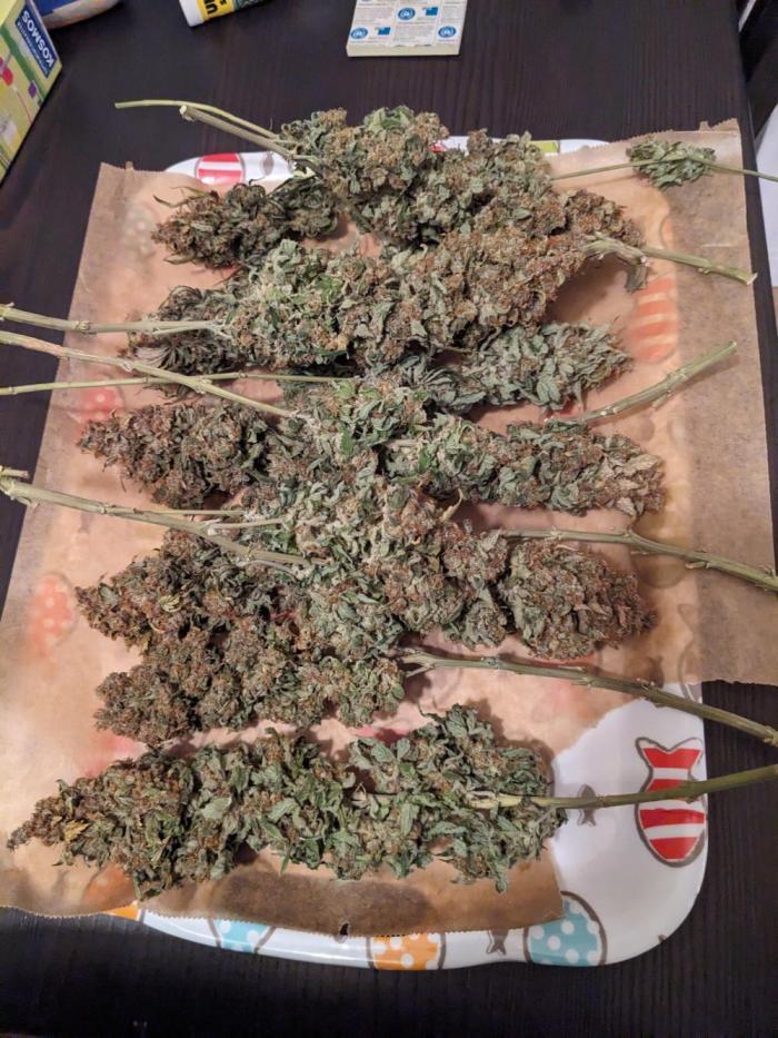 Температура сушки и пролечки была неидеальной (~ 20,5 °C при 60%), поэтому я, конечно, некоторые терпены не раскрылись. Но, черт возьми, 132 грамма отменных по эффекту шишек… Очень мощных с очень сильным воздействием. Безотказное снотворное!