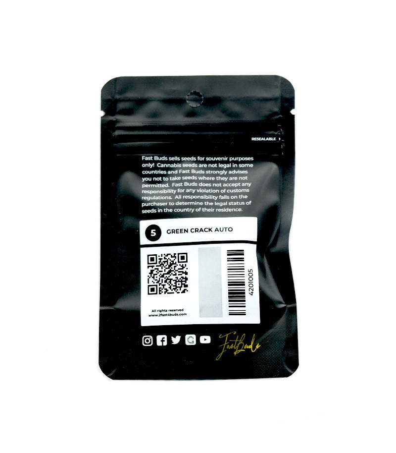 Сорт конопли Green Crack Auto появился в результате скрещивания легендарного Skunk#1, стойкого афганского ландрейса Индики и искромётного представителя мексиканской Сативы. Добавив к этому генетическому миксу стабилизированный канадский Рудералис, селекционерам Fast Buds удалось получить новый взрывной автик с коротким жизненным циклом и поразительной стойкостью перед болезнями и стрессовыми ситуациями. Ну и, конечно, он не просто так получил своё название – этот сорт действительно обладает крайне бодрым и энергичным эффектом, столь ценным среди пользователей каннабиса!