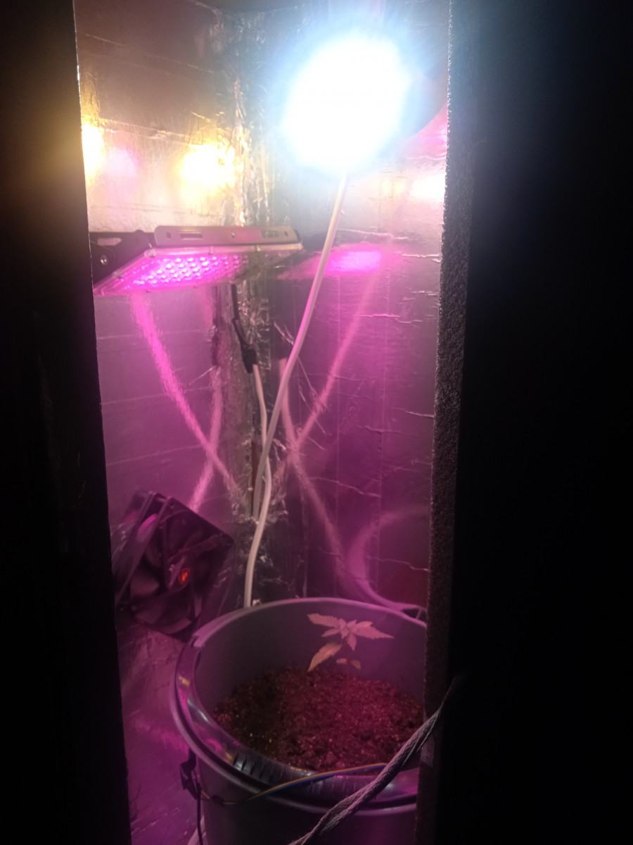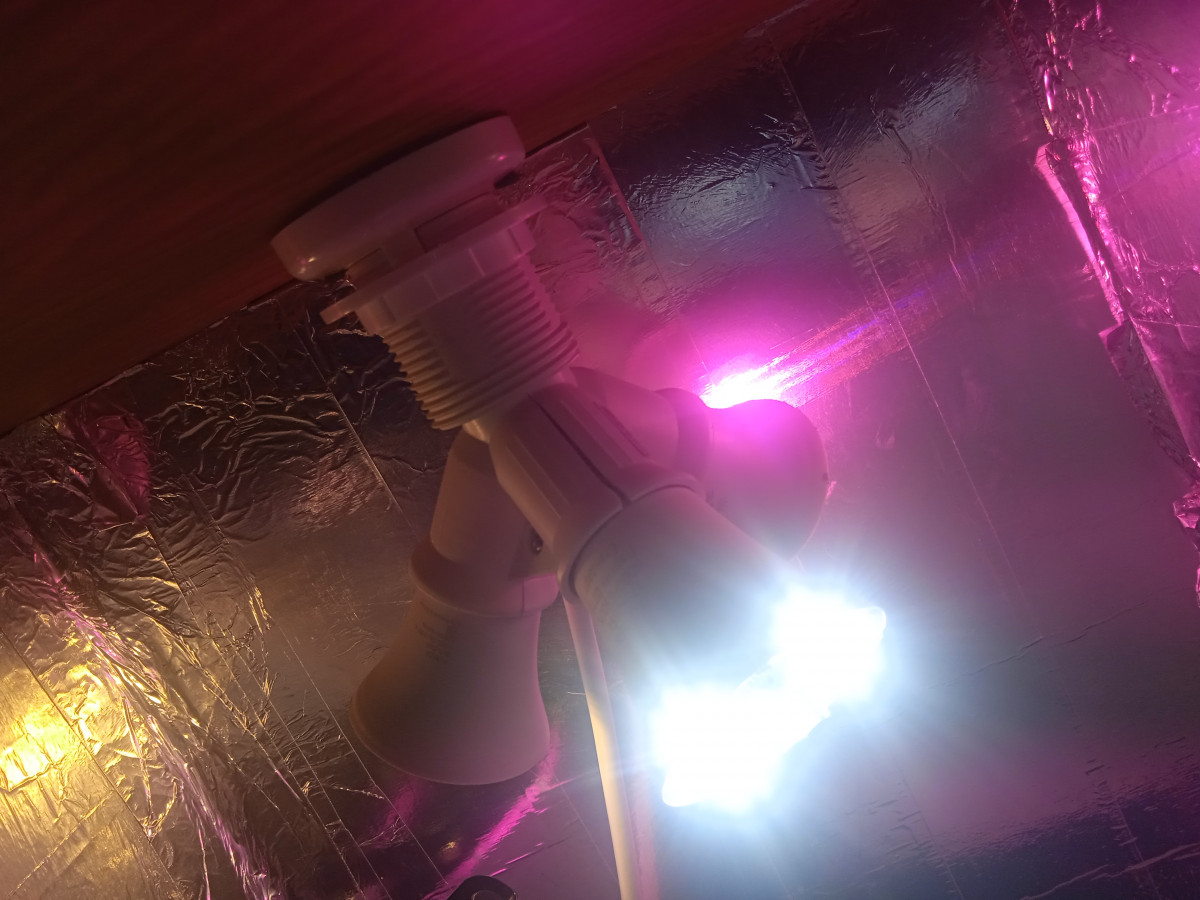 Лампа купил в озон за 900 р 50 в.. Полный спектр разветвитель на 3 лампы и 3 лампы разных спектров работаю в паре на фото 2 недели в качестве отражателя алюминиевый скотч с работы