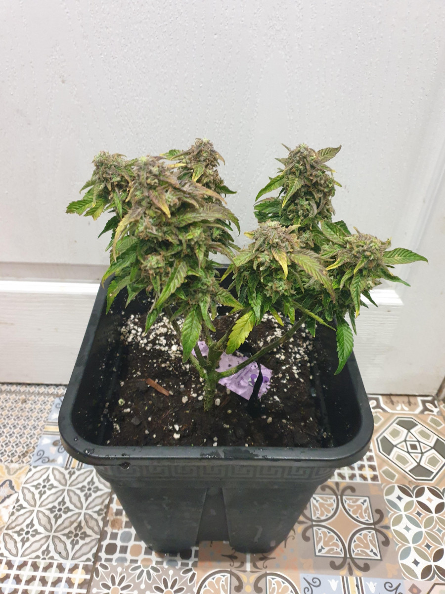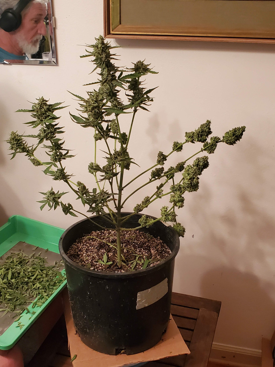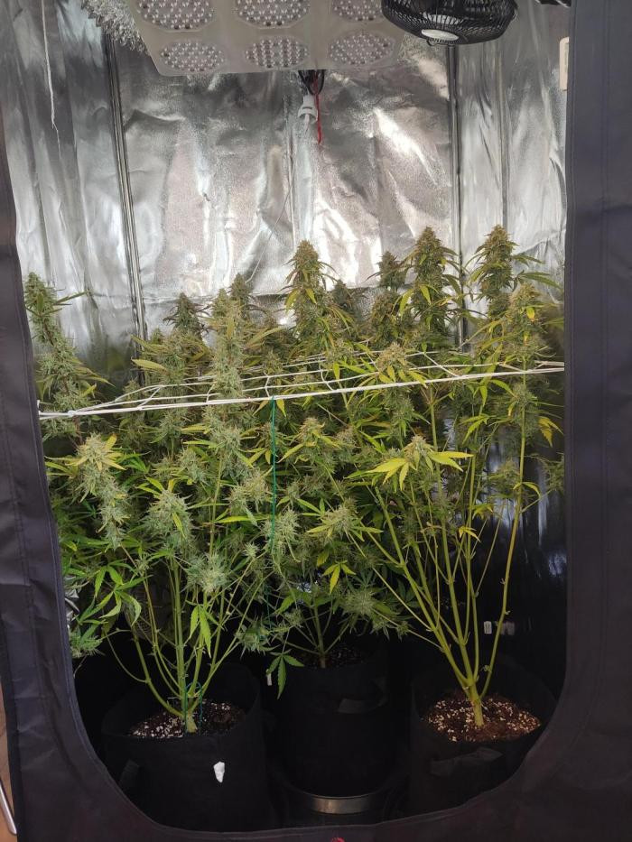 Мне пришлось его харвить немного раньше оптимального пика зрелости, потому что на шишках образовалась небольшая плесень, так как 5 растений в 11-литровых горшках в палатке размером 80x80 см — это многовато.