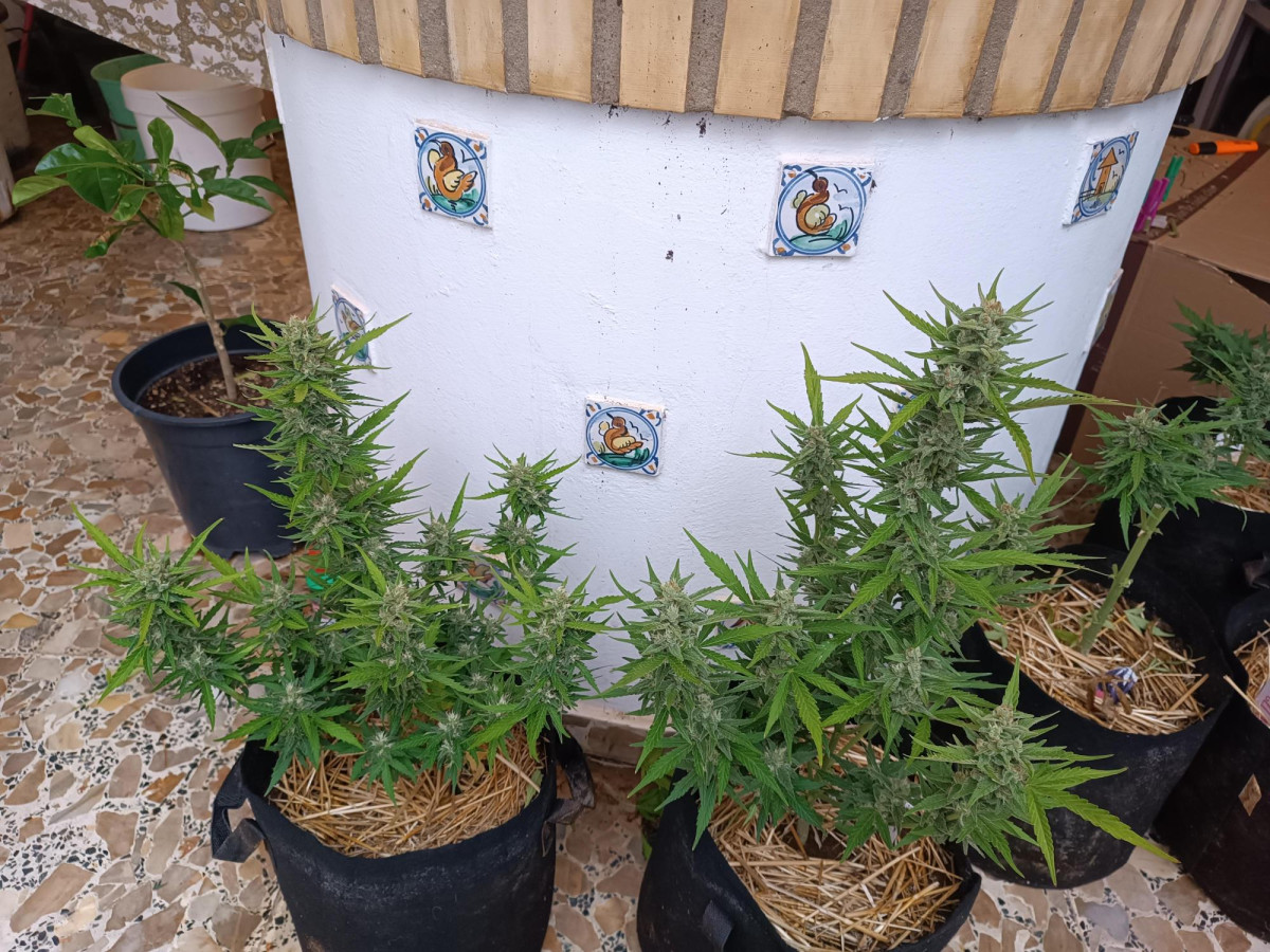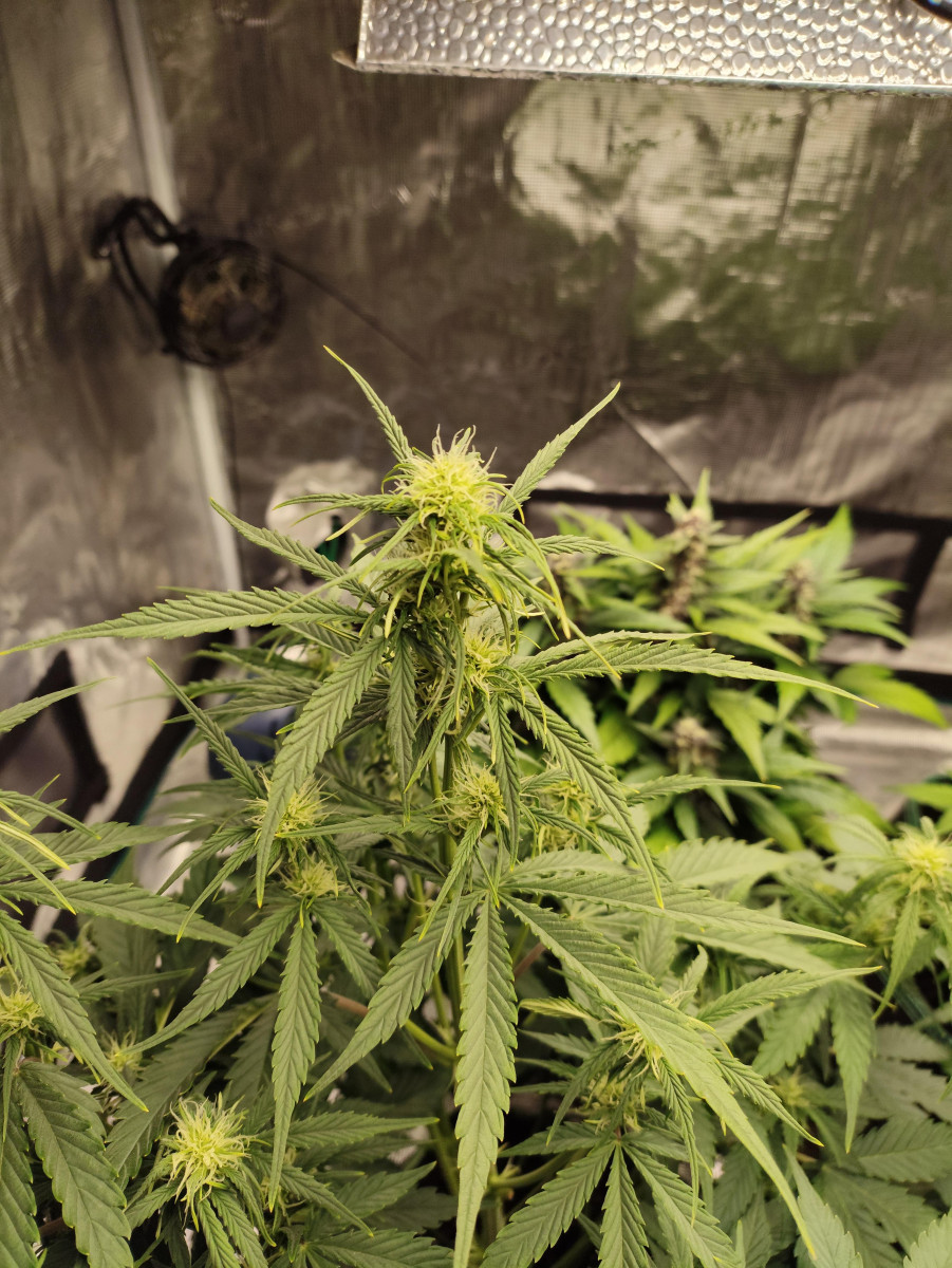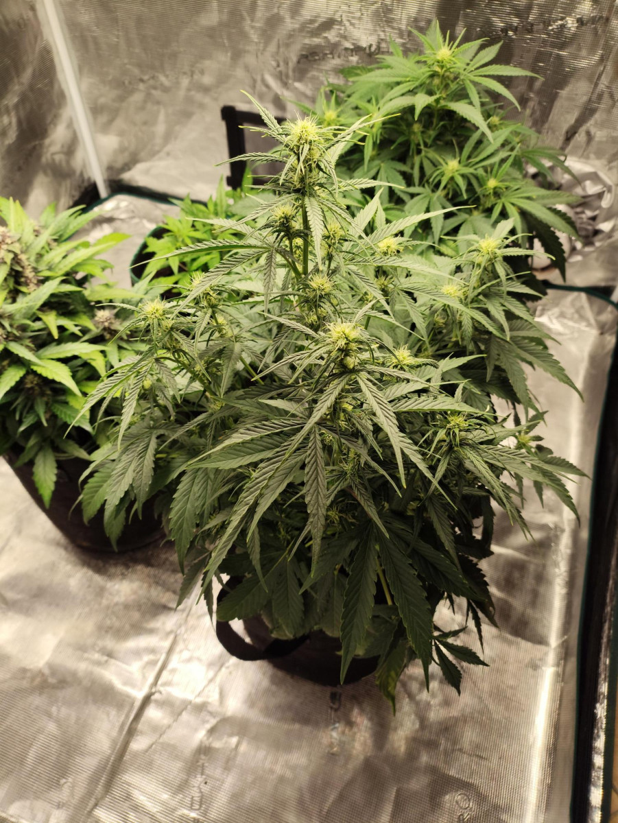Кустики перешли на цветение в 4 недели, сейчас 6-я неделя. Растут хорошо. Я начал давать Big Bud и Bud Candy от Advanced. Сильного запаха пока нет.