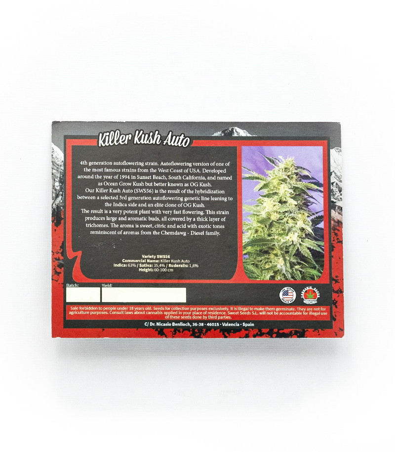 Семена сорта Killer Kush Auto fem (Sweet Seeds) Испания, Феминизированные, Автоцветущие, ТГК-18 - 22