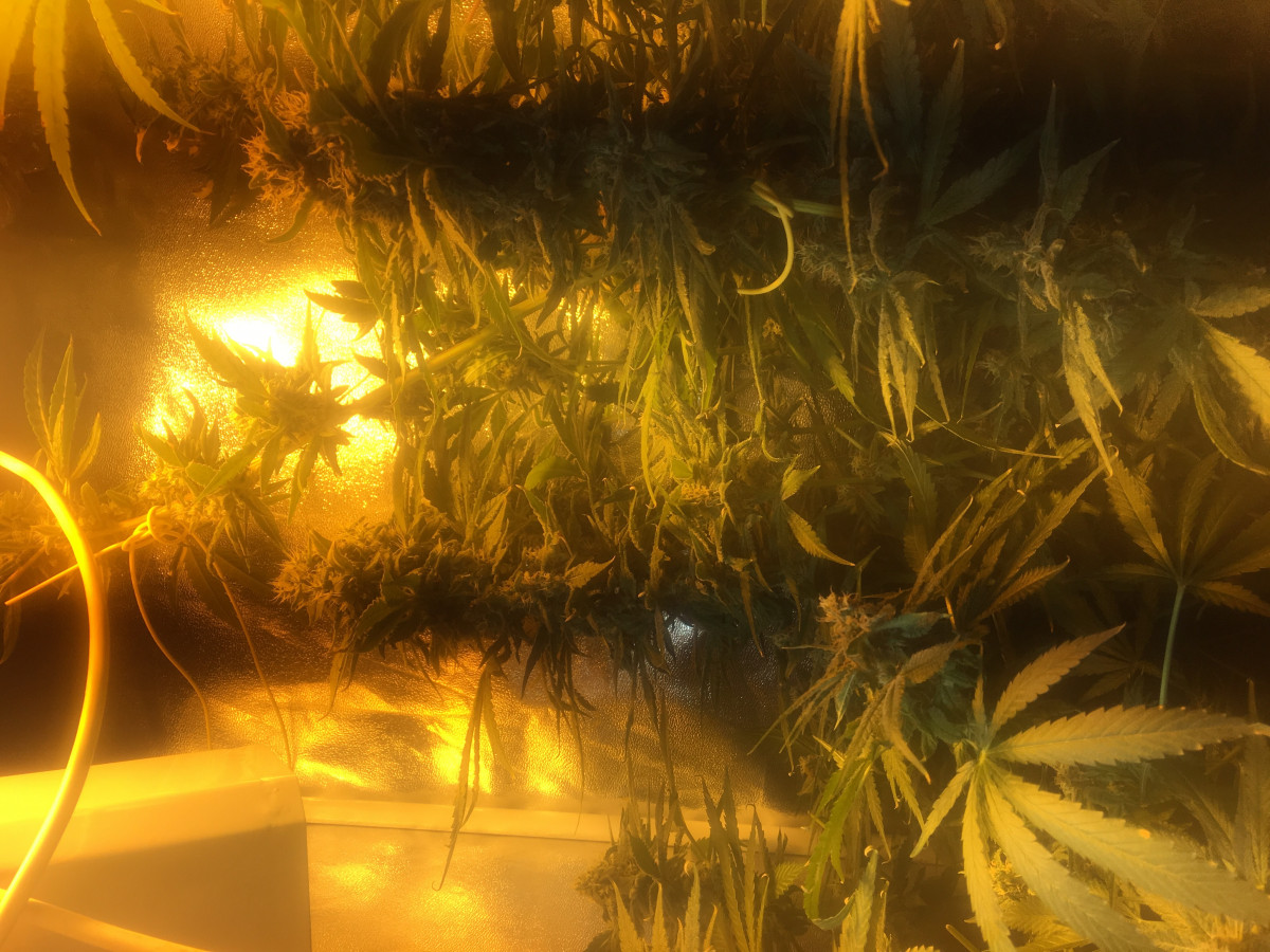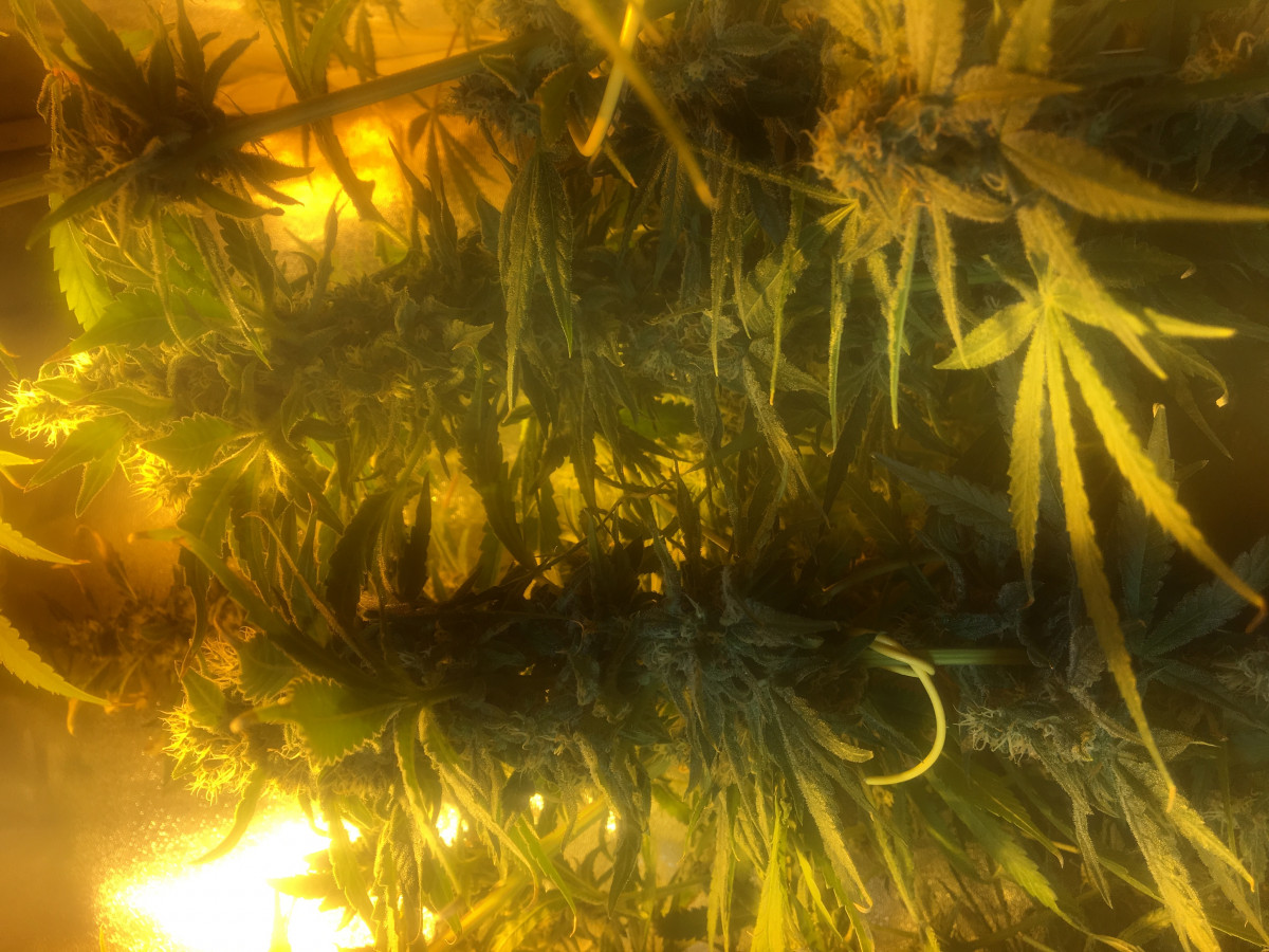 На пятой неделе цвета решил попробовать маникюра. Приходит полное спокойствие и невозмутимость. С одного напаса на голову опускается наковальня. На харвесте думаю будет жесть. Новичкам осторожнее. Колы набитые снизу до верха, не все конечно, но на куст по две три колы не менее 30см и обхват с редбул. Больше 4 кустов на 1м.кв не влезут точно. Все в снегу и листья и ветки и руки. Бохи очень липкие. Нет ни плесени нидругой херни. Но я в гидру лил триходерму, может по этому. Днат 400вт, ghe База, стимуляторы эдвансед. Жару переносит норм, гидру любит