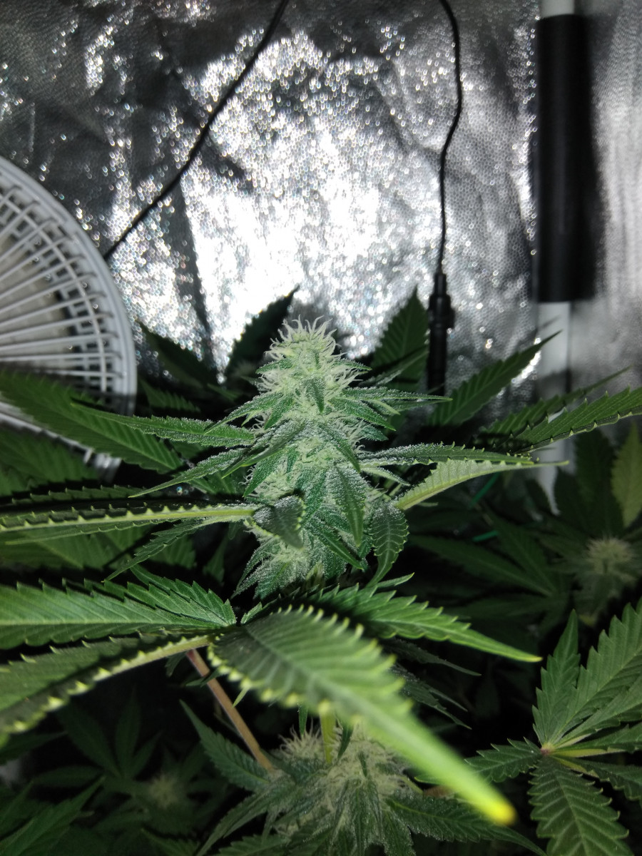 Я не опытный гровер и это мой первый опыт.Нам 37 дней, маленькому 31 день. Фото старенькое, сейчас они уже постарше одному 48 дней, другому - 42, уже приятно пахнут. Удобряю раз в 10 дней, поливаю покупной водой в которой больше всего минералов.Поливаю по мере засухи земли.Как только земля подсыхает начинаю поливать.Смотрю фотографии данного сорта,у всех разные фотографии,как будто бы сорта другие.Или может они у всех по разному растут.Мой вытянулся листья начинают расти вширь. Боюсь, что моего самодельного гроубокса им не хватит.