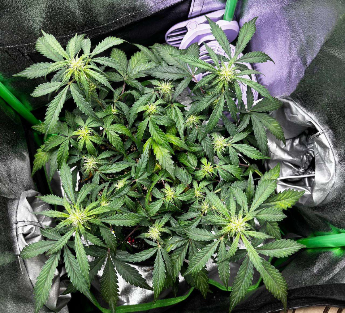 Растили на кокосовом субстрате, без буферизации (потому что забыли), из-за чего на веге выросла детка не сильно. Но в нашем случае даже лучше, так как бокс был очень компактный. Использовали удобрения на протяжении всего роста biobizz дополнительно вносили магний.