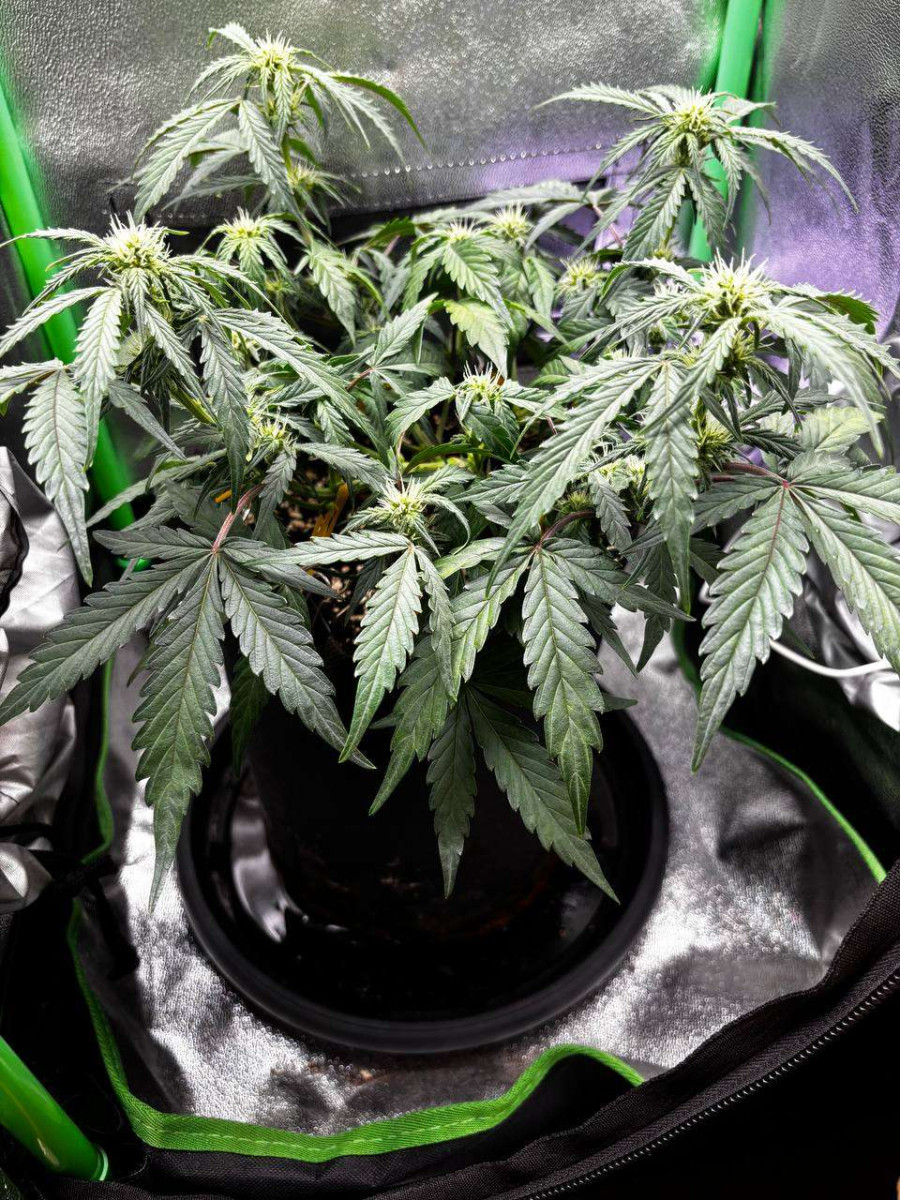 Цветение началось с 7 недели, а всего гров занял 11 недель. Очень быстро тцветает и созревает. К харвесту соцветия стали чуток розоватыми, а все стигмы рыжими.