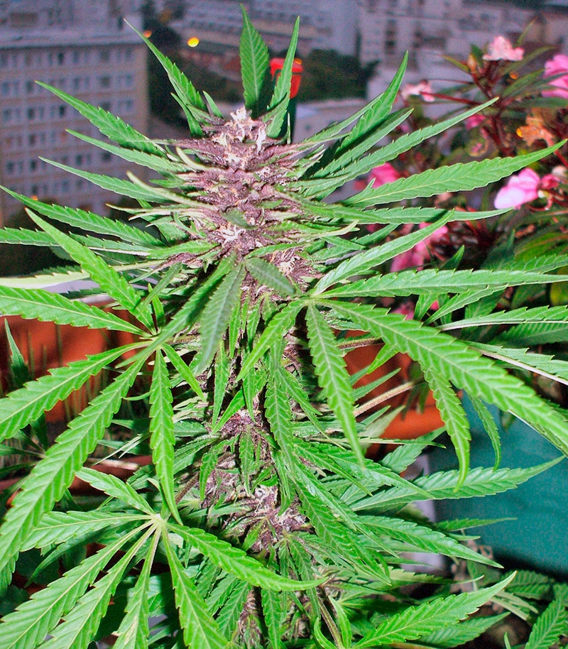 Скорость роста отличная, а узкие листья, похожие на листву чистого сативного растения, окрашены очень красивым лилово-фиолетовым цветом. При выращивании в теплице длительность цветения 8 недель.