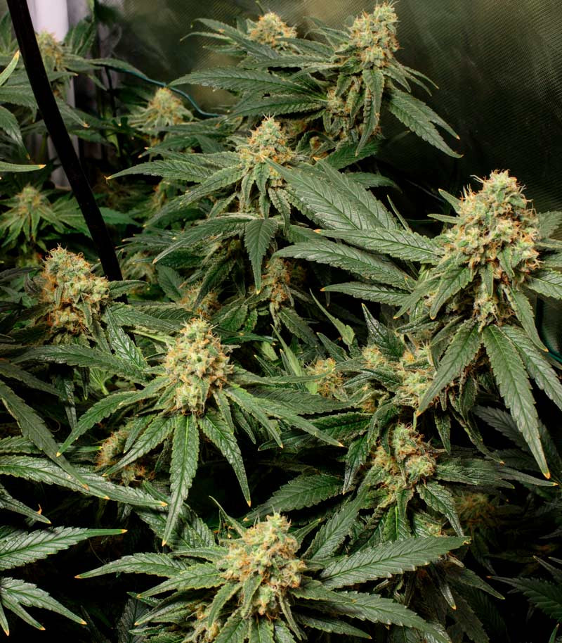 Во время цветения источает аппетитный цитрусово-землистый аромат, порой, можно учуять слабые “дизельные” ноты. К концу непродолжительного цветения, 63 – 70 дней соцветия покрываются добротным слоем морозной смолы.
