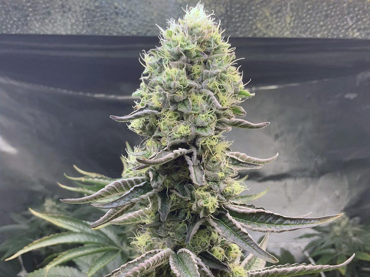 Этот сорт – абсолютный зверь. Мегаплотные бутоны. Красивые цвета, свежий аромат и приятный кайф. Довольно легко выращивать, и я обязательно подниму его снова. 300 грамм красивых шишек, без попкорна, вполне хороший результат.