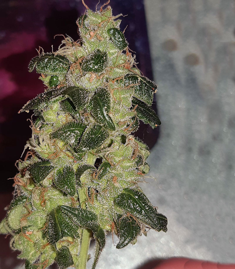 На цветении растение покрывается трихомами не хуже какой-нибудь “Белой Вдовы”, формируя шишки, похожие на драгоценные камни. Также появляется очень мощный аромат, сочетающий землистость, ваниль, фрукты и небольшую кислинку. Угольный фильтр понадобится обязательно.
