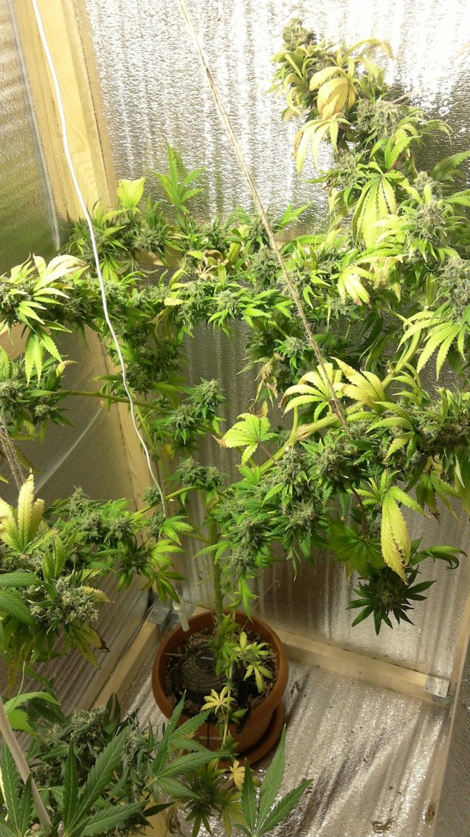 Уф. Закончил свой первый гров, доволен неописуемо! Чего только не натерпелась моя растиха... Два переезда по квартирам( один переезд вообще зимой), два раза ЖЕСТКО гнул стебель, думал не выживет, но нет! Сначала растил на ЭСЛ, потом взял ДНАТ 250, горшок 7л земля.