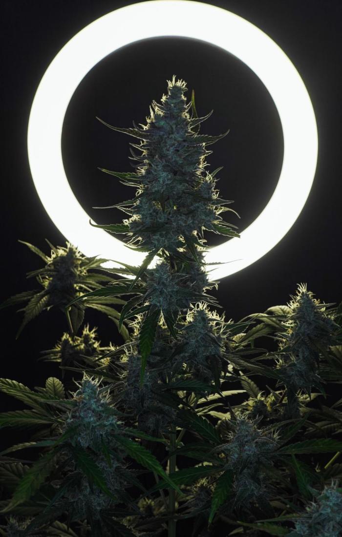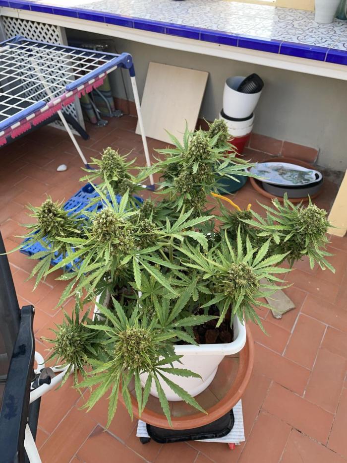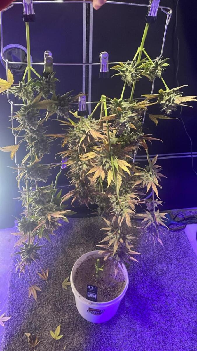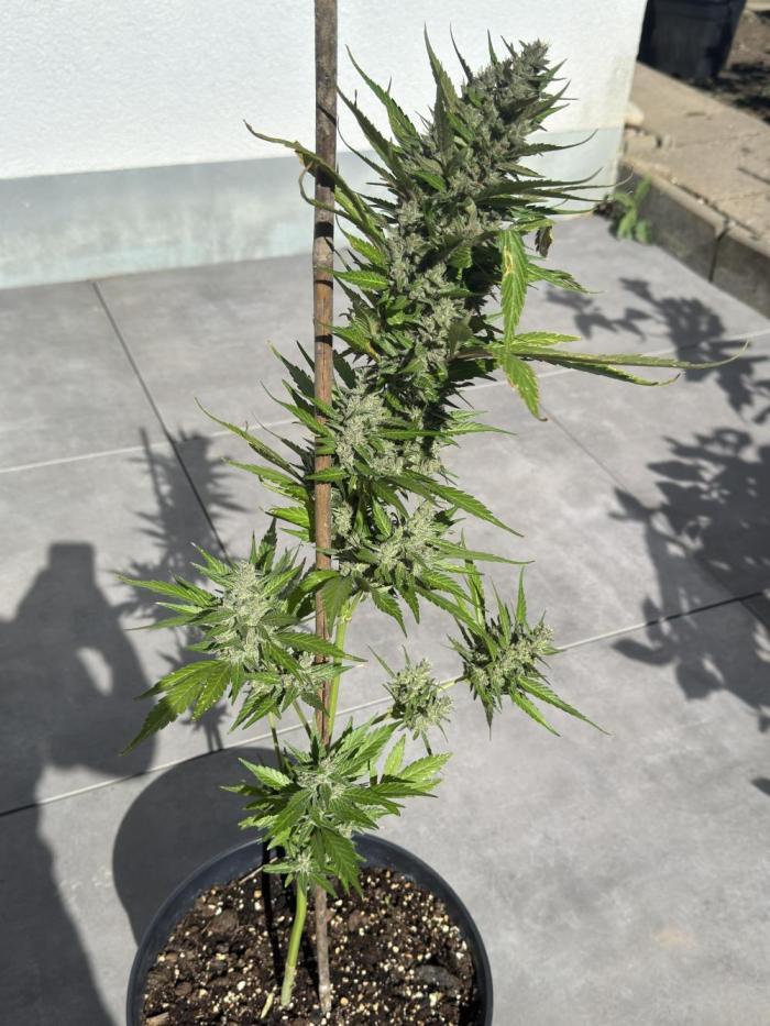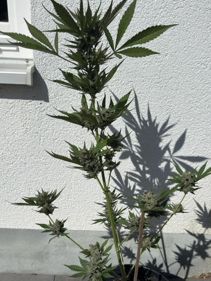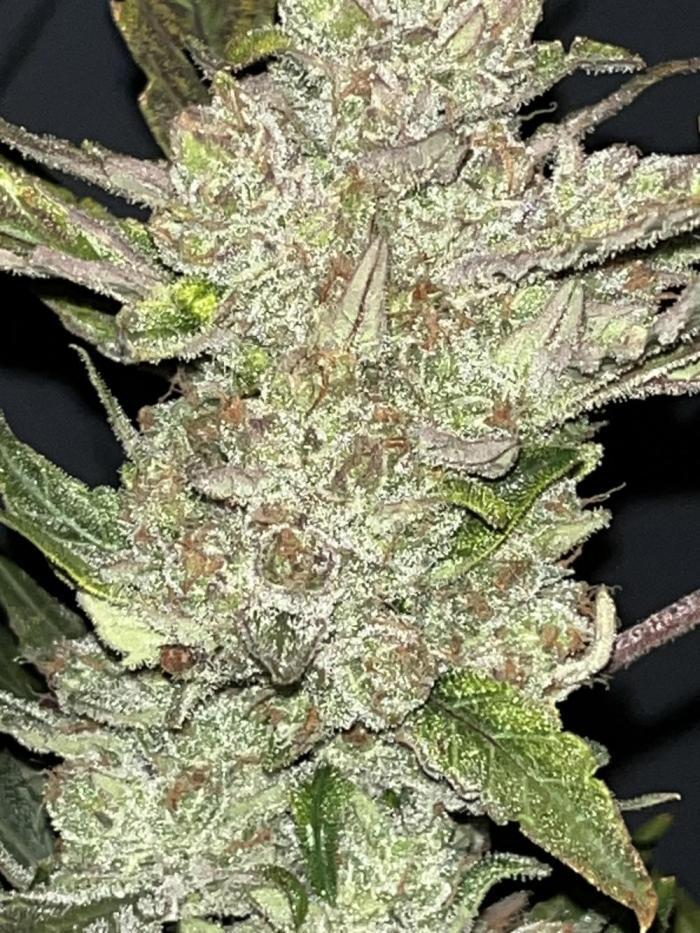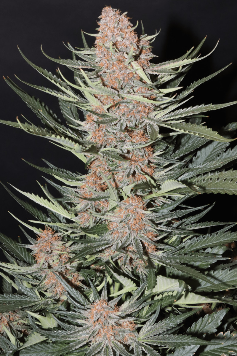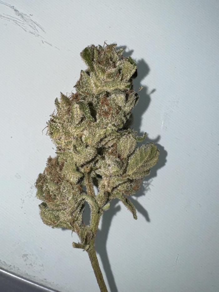 Этот сорт - один из моих абсолютных фаворитов теперь. Он просто взрывается ростом, а потом шишками. Структура симметричная, каждая ветка сплошь покрывается толстыми соцветиями, как верхние ветки, так и нижние. Неземной аромат и колоссальное количество смолы. Она словно снеговик.