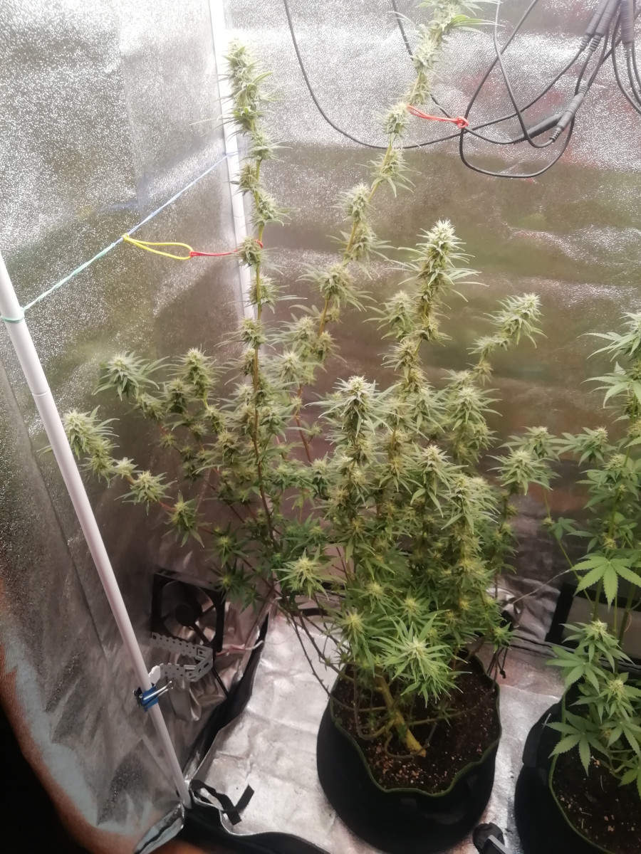 Шишки пока не пробывал а вот листики начал курить ещё на веги, прёт как танк может из за того что я не прикуренный(курю 3 раза в неделю исключительно по вечерам после работы), питаются Биобизом, гров, блум и на цвете ещё топ макс, сколько резал листики не одного стресса, ест хорошо пьёт тоже замечательно. На фото ей 95 дней шишки не увеличиваются но с каждым днём становятся плотней от этого её гнёт приходится подвязывать, на веги от листиков эффект больше сативы а сейчас на цвете(на цвете 35 дней)прям рубит индика преобладает. В заключении скажу, сорт бомба особенно для прикуренных но не для движения, сидеть смотреть любимый фильм и хавать мороженое, хорошее снотворное, в депрессии и бессоннице и других психологических отклонений лучший друг